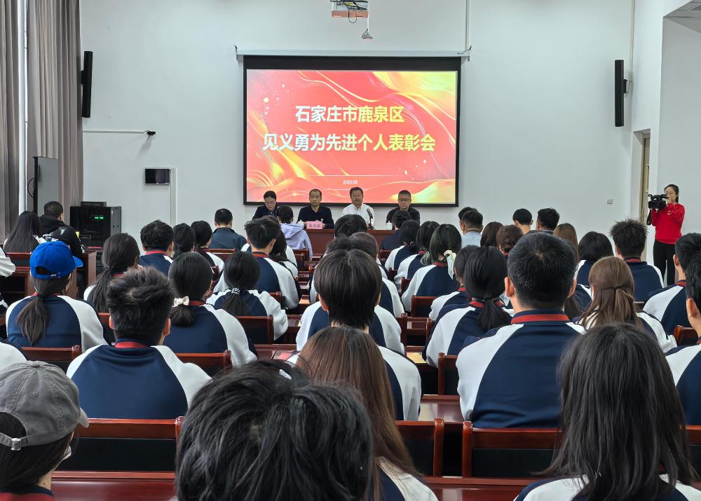 会上宣读了对河北传媒学院艺术体育学院学生赖炜桢、程祥阳见义勇为表彰通报,授予两位同学“鹿泉区见义勇为先进个人”荣誉称号,并颁发荣誉证书和奖金,表彰他们在危急时刻挺身而出、勇救落水者的担当行为。
