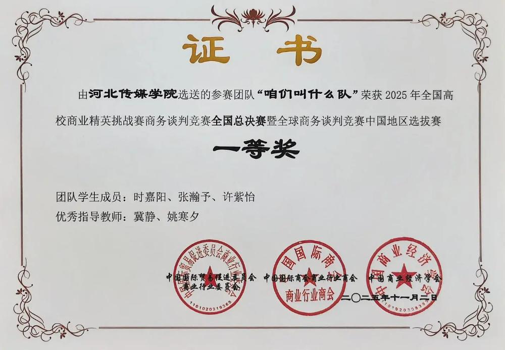 日前,2025年全国高校商业精英挑战赛商务谈判竞赛全国总决赛暨全球商务谈判竞赛中国地区选拔赛落下帷幕,我校文化产业管理学院派出的6支代表队在比赛中脱颖而出,2支队伍成功斩获全国一等奖,4支队伍荣获全国二等奖。值得一提的是,2024级文化产业管理专业时嘉阳同学在比赛中表现尤为出色,荣获“最佳谈判手”称号。同时,我校被授予“最佳院校组织奖”。