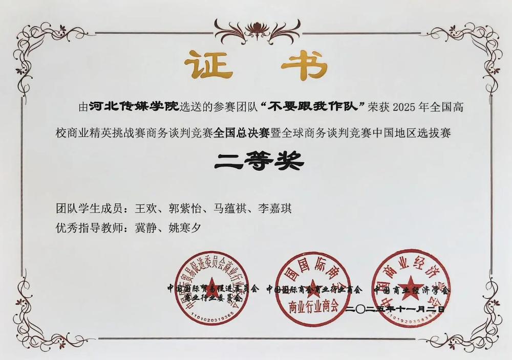 我校学生在2025全国高校商业精英挑战赛商务谈判竞赛中获得佳绩