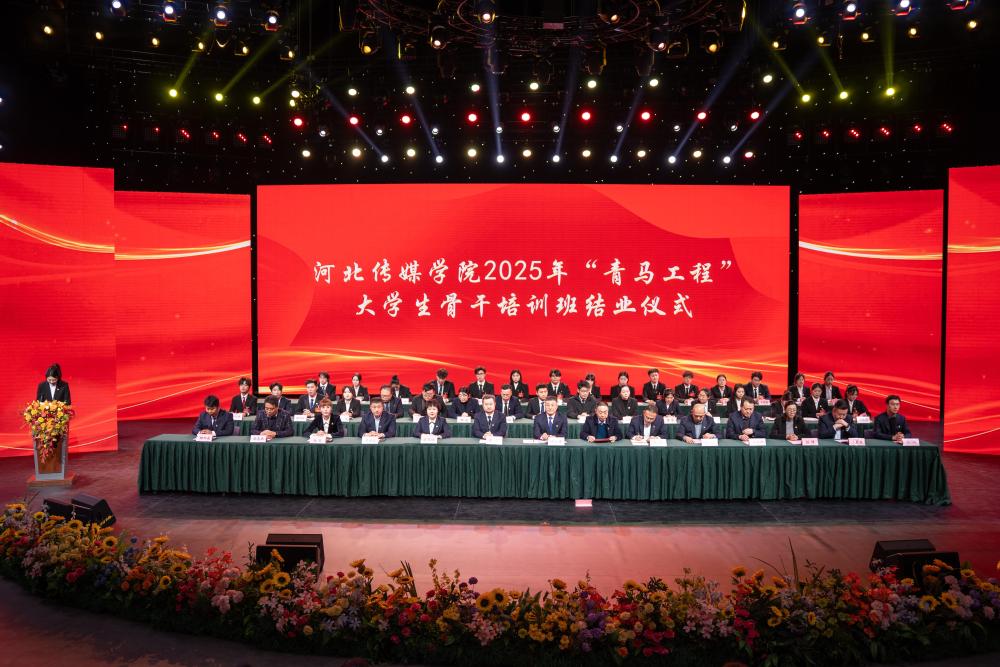 近日,河北传媒学院2025年“青马工程”大学生骨干培训班结业仪式在兴安校区举行。副校长高晓峰、校长助理张川出席,学生处、团委及各二级学院负责人与青马学员代表共同参会。