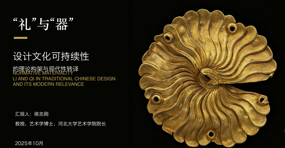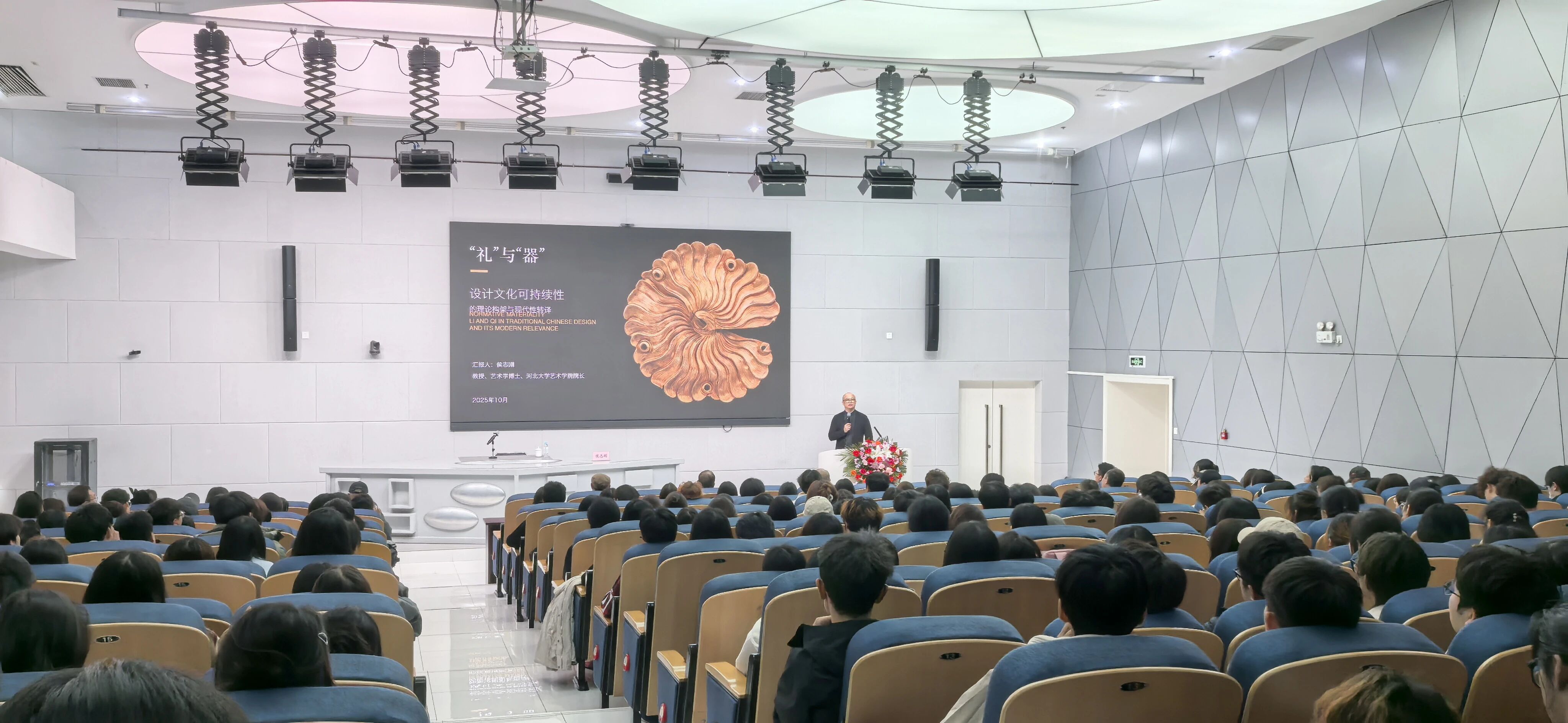 科研处处长董孟怀作总结,对侯志刚院长的讲座给予高度评价。现场师生普遍认为,本次讲座不仅是一场学术盛宴,更是一堂生动的“课程思政”实践课。与会教师深入探讨了侯志刚院长提出的“礼—器”一体理论,认为该理论深刻揭示了文化传承与创新中蕴含的价值导向和家国情怀,为设计学科落实“立德树人”根本任务提供了重要启示。大家一致表示,将在今后的教学与实践中,更加注重培养学生的文化主体意识与社会责任感,引导学生自觉将设计创作融入国家文化发展大局,在创新中彰显文化自信、传递时代价值。