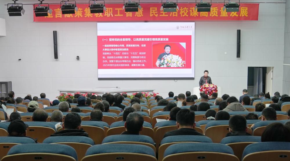 校长李锦云向大会作学校工作报告。报告从八个方面总结了2025年学校的工作:一是坚持党的全面领导,以高质量党建引领高质量发展;二是聚力“两大工程”战略牵引,夯实育人基础保障;三是适应新的教育生态,重塑应用型人才培养体系;四是开展有组织科研,学校整体科研能力明显提升;五是拓宽办学视野,积极推进国际化办学;六是创新育人范式,构建“三维赋能”时代新人培育体系;七是服务国家战略和区域发展需求,打造产教融合新范式;八是审核评估“以评四促”,学校发展出现新面貌。李校长指出,2025年是我校历史上又一个“大有之年”。这一年,我们以优秀成绩收官“十四五”规划、完成了五年一轮的审核评估、打响了建设高水平大学“十年决战”的第一炮、完成了本年度的各项工作目标,学校工作呈现一年四季“百花盛开”景象。关于未来发展,李校长聚焦高质量发展核心,围绕“向新、向上、向深、向高、向强、向效”提出明确要求,着力在整改焕新、目标攻坚、教改深化、科研突破、筑牢根基、管理提效六个维度发力,既要冲刺专业博士学位授予权与高水平大学建设目标,又要深耕教改科研、强化师资与人工智能支撑,以全方位提升推动学校内涵发展。