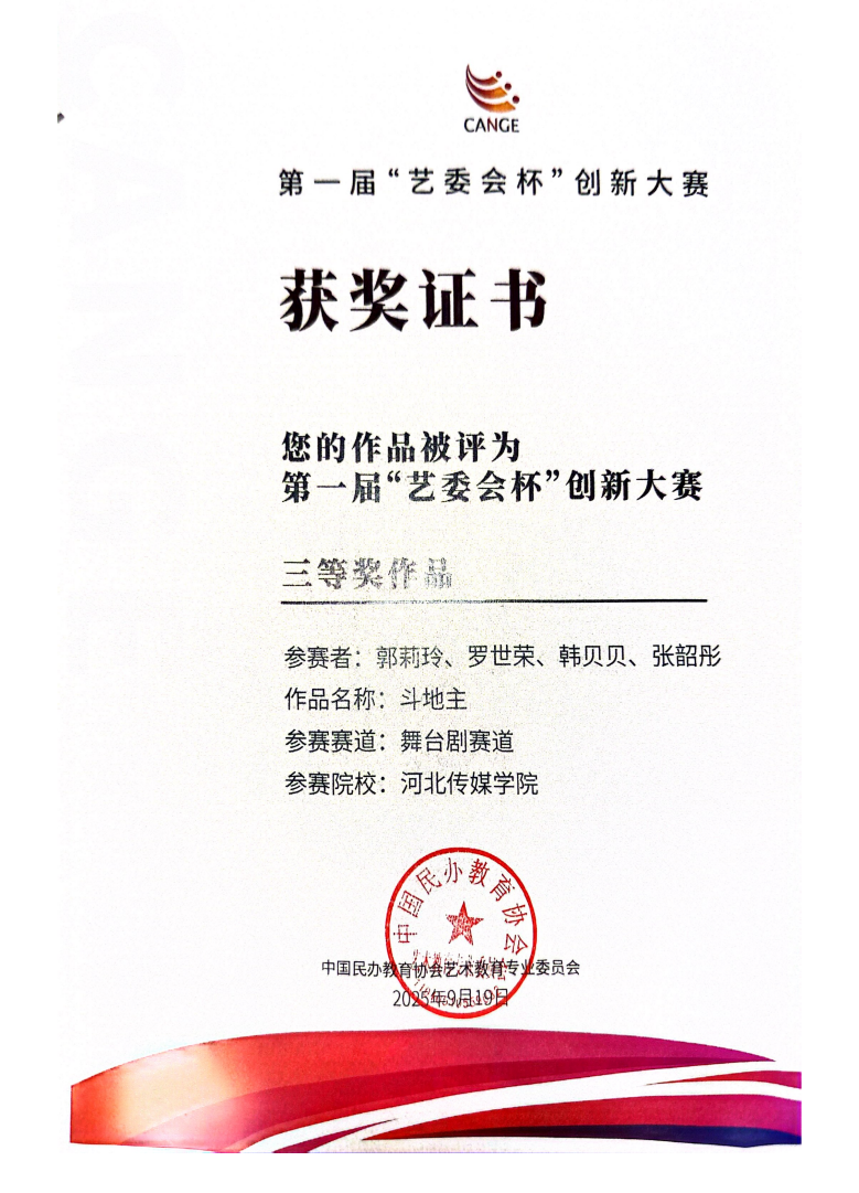 近日,河北传媒学院在艺术与设计、影视创作等领域捷报频传,师生在国际赛事、国家级电影节及全国性创新大赛中接连斩获重要奖项。 在国际舞台上,美术与设计学院视觉传达设计专业学生尹瑛菊表现亮眼。在2025亚洲新锐艺术与设计大奖评选中,她的作品《Citywalk视角下-城冀探步:河北省文旅视觉形象设计》从全球数十个国家和地区的四千余件参赛作品中突围,荣获铜奖。作品以“城市漫游”为切入点,用创新视觉语言展现河北文旅特色,在创新性、艺术表现力与社会价值维度获评委高度认可。 在影视创作领域,戏剧与影视专业研究生王意辉带领ET AI Studio团队再添荣誉。在福州举办的第十二届丝绸之路国际电影节“两岸A...